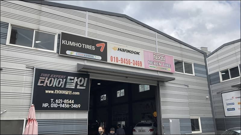 타이어 달인은 큰 컨테이너 공장으로 만들어져있는데, 가게 앞에 주차를 하고 나면 직원분들이 나오셔서 교체해야하는 타이어가 무엇인지 여쭤보고 가격에 대해서 바로 설명해주십니다.