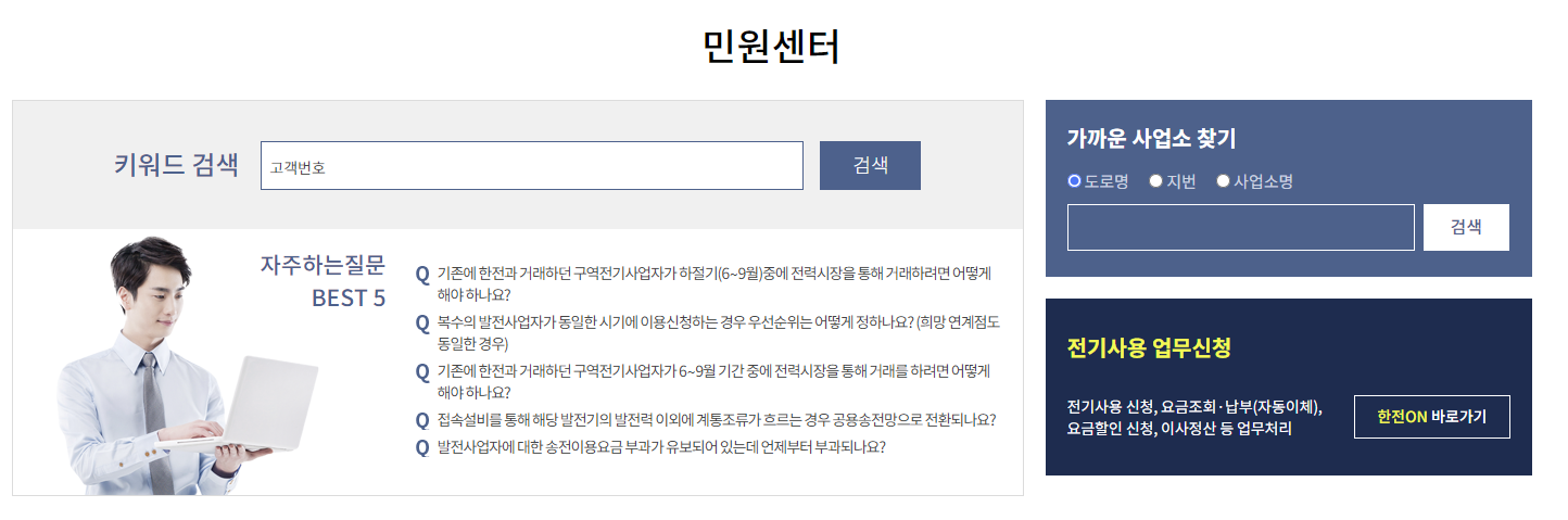 - 한전의 공식 웹사이트에서 사이버지점에 접속합니다.