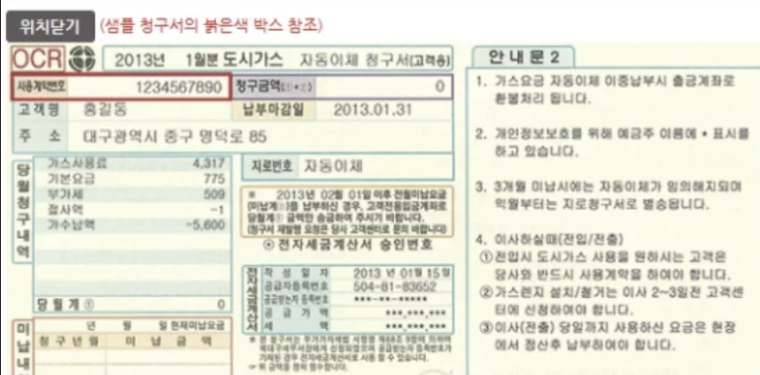 | 전기요금 고지서 | 고지서 상단에서 확인 | 고객번호 바로 확인 가능 |