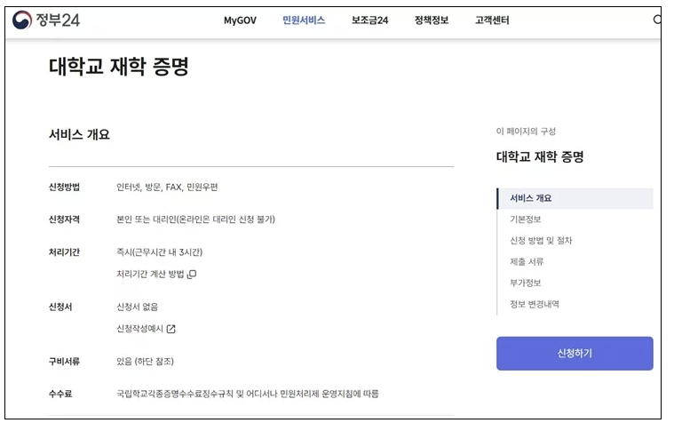 - 학교 연계 여부: 모든 학교가 정부24 서비스를 통해 증명서를 발급하지는 않으므로, 사전에 본인의 학교가 이 서비스와 연계되어 있는지 확인해야 합니다.