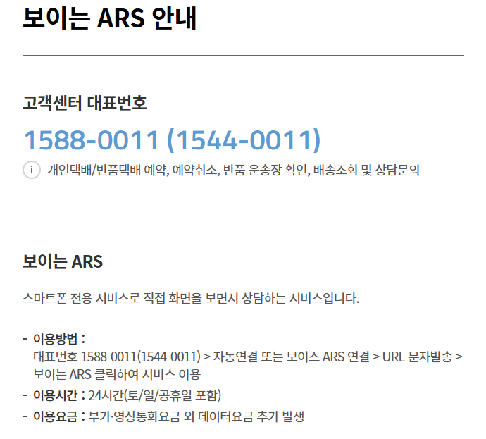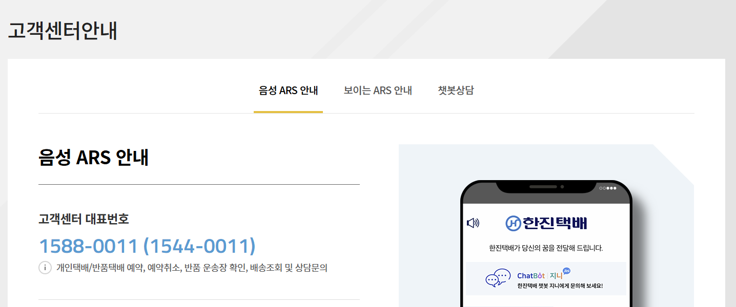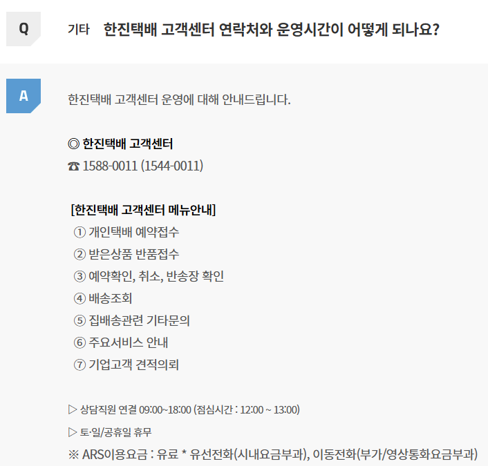 | 온라인 문의 | 한진택배 홈페이지 및 모바일 앱에서 24시간 가능 |