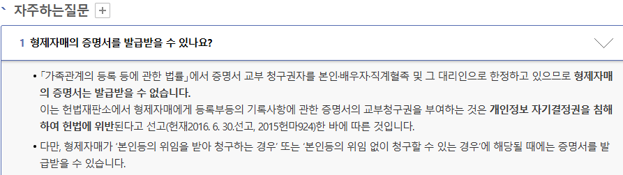 Q1. 기본증명서 발급 시 다른 가족의 정보도 포함되나요?