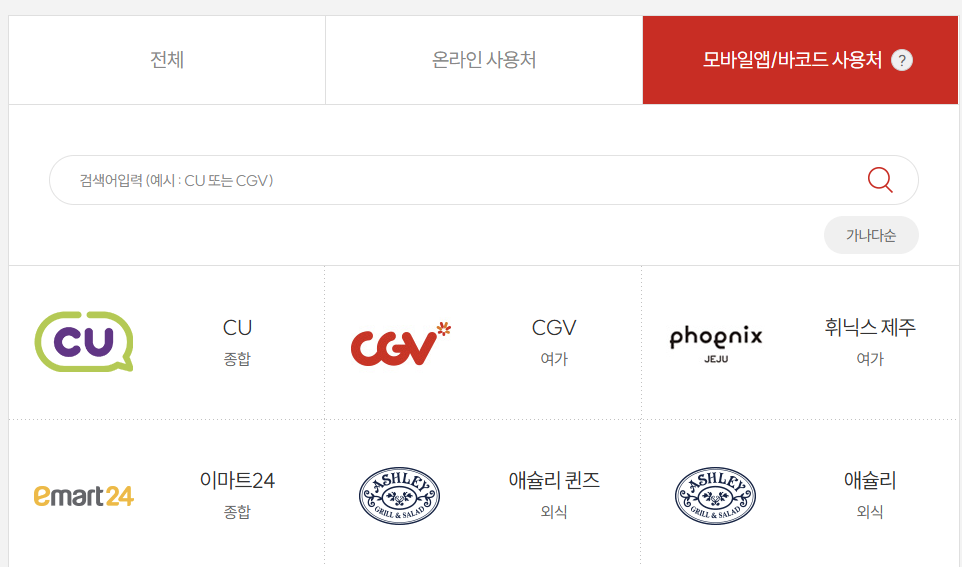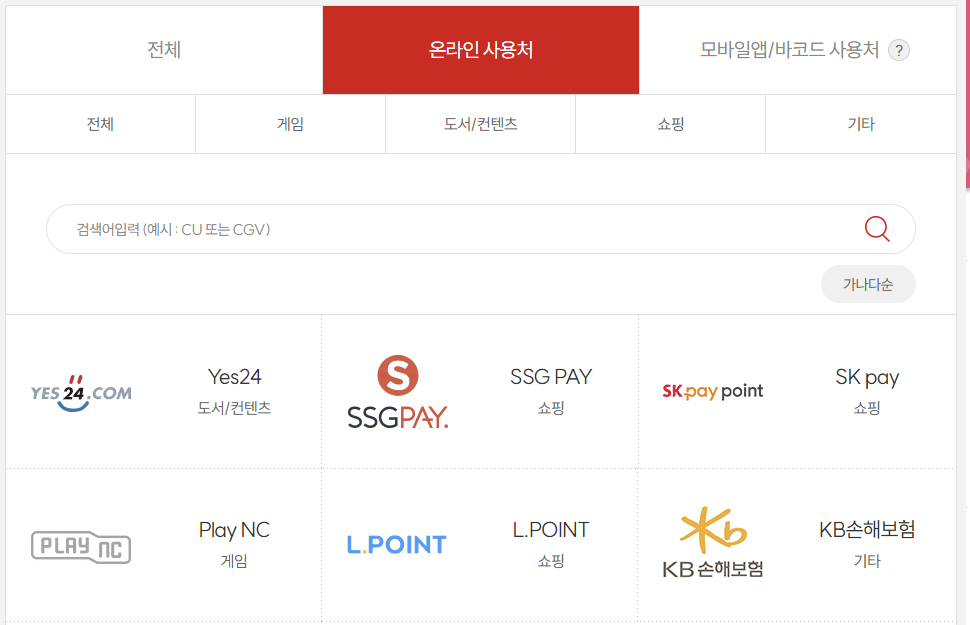 컬쳐랜드 문화상품권 주요 사용처