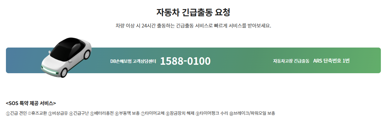 DB 다이렉트 자동차보험은 24시간 긴급출동 서비스를 제공하여 고객이 자동차 고장이나 사고로 인한 불편을 신속하게 해결할 수 있도록 지원합니다. 특히 사고 발생 후 이동이 필요한 경우 견인 서비스를 포함한 다양한 긴급 조치가 이루어집니다.