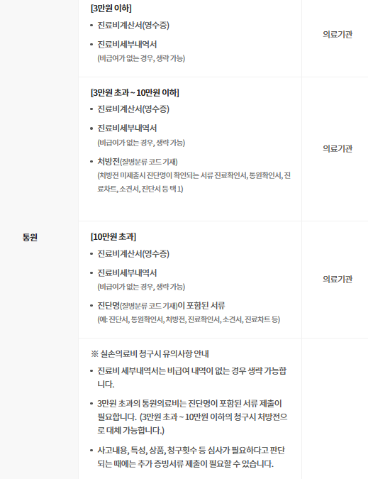| 진료비 세부 내역서 | 항목별 진료비 상세 내역 포함 |