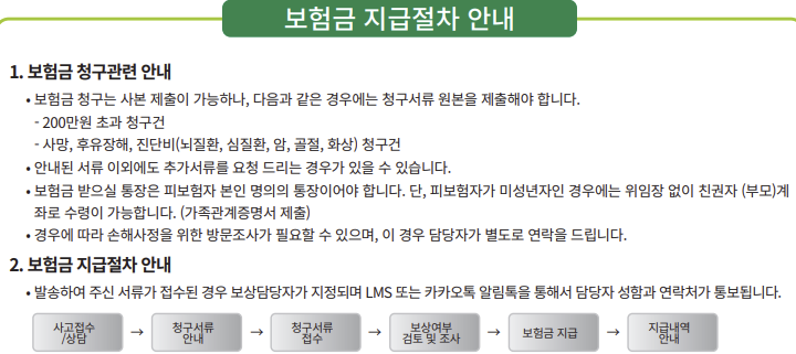 | 통장 사본 | 보험금 지급을 위한 계좌 확인 |