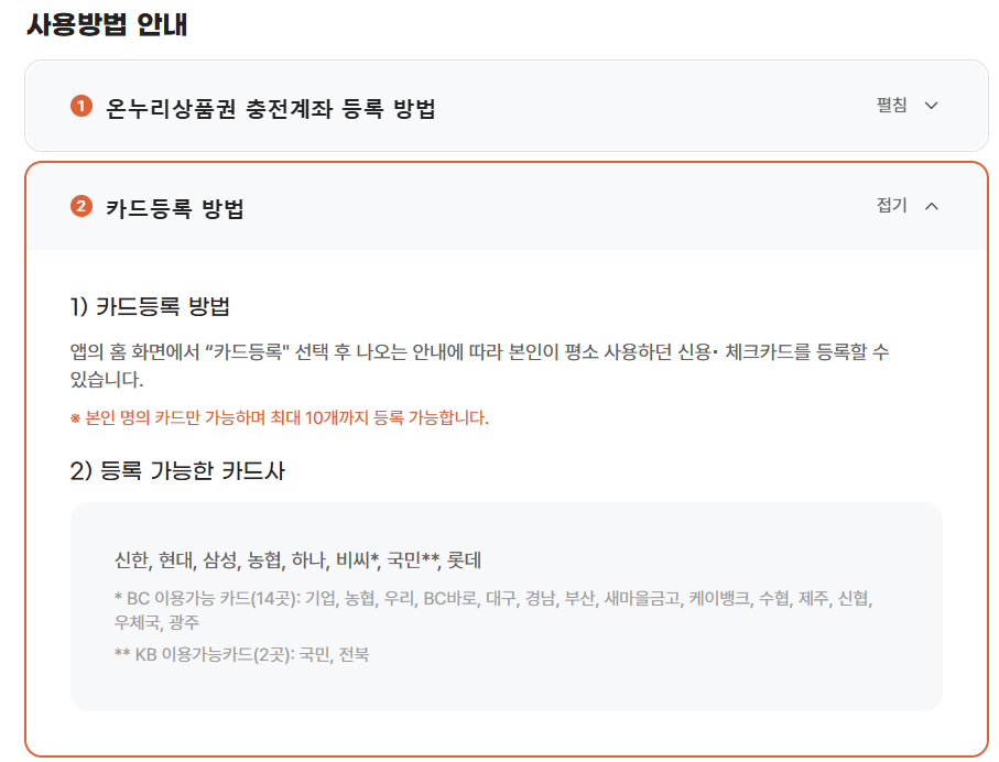 | 구매처 | 제로페이 기반 앱 (온누리페이 등) | BC카드 취급 은행 (농협, 기업, 우리 등) |