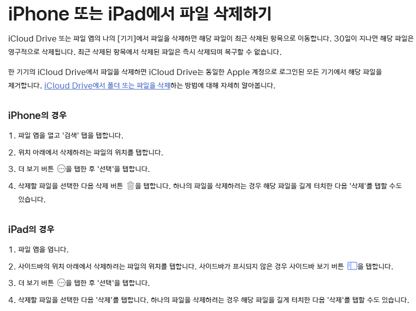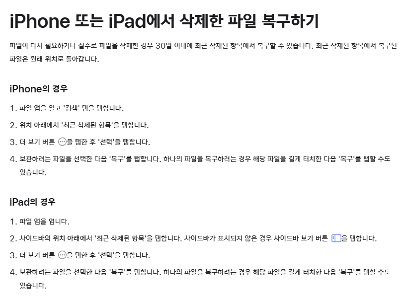| 아이폰 파일 | 파일 앱 | 최근 삭제된 항목 | 문서 파일 | 30일 |