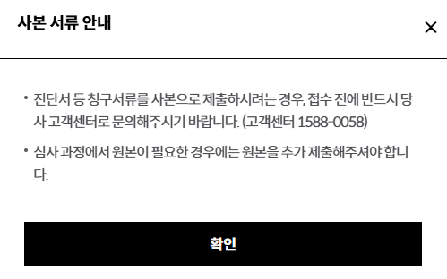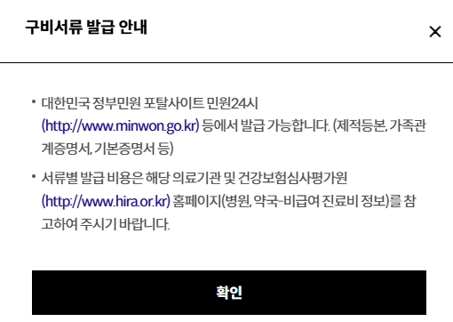 - 수술의 경우: 수술확인서, 진단서, 진료기록 사본