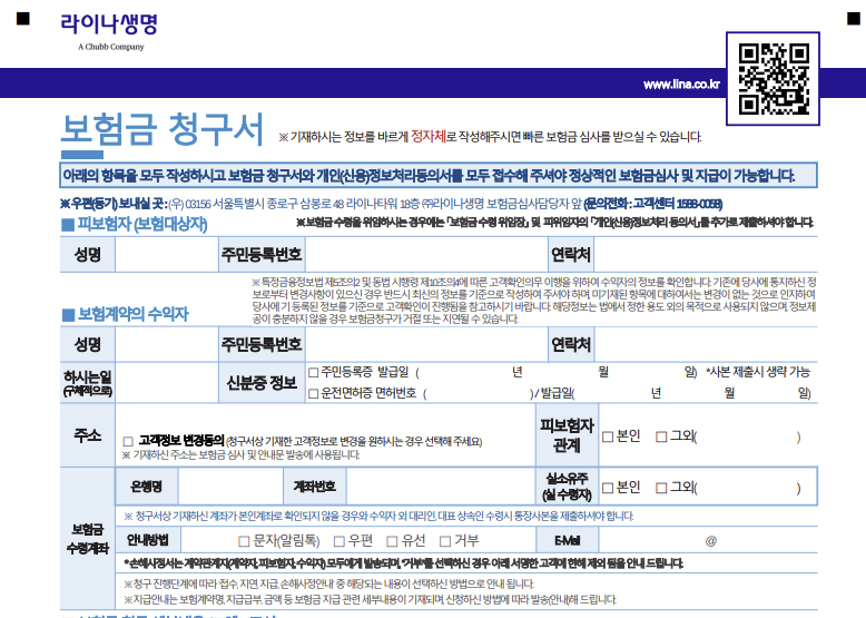 라이나생명 보험금청구서 양식